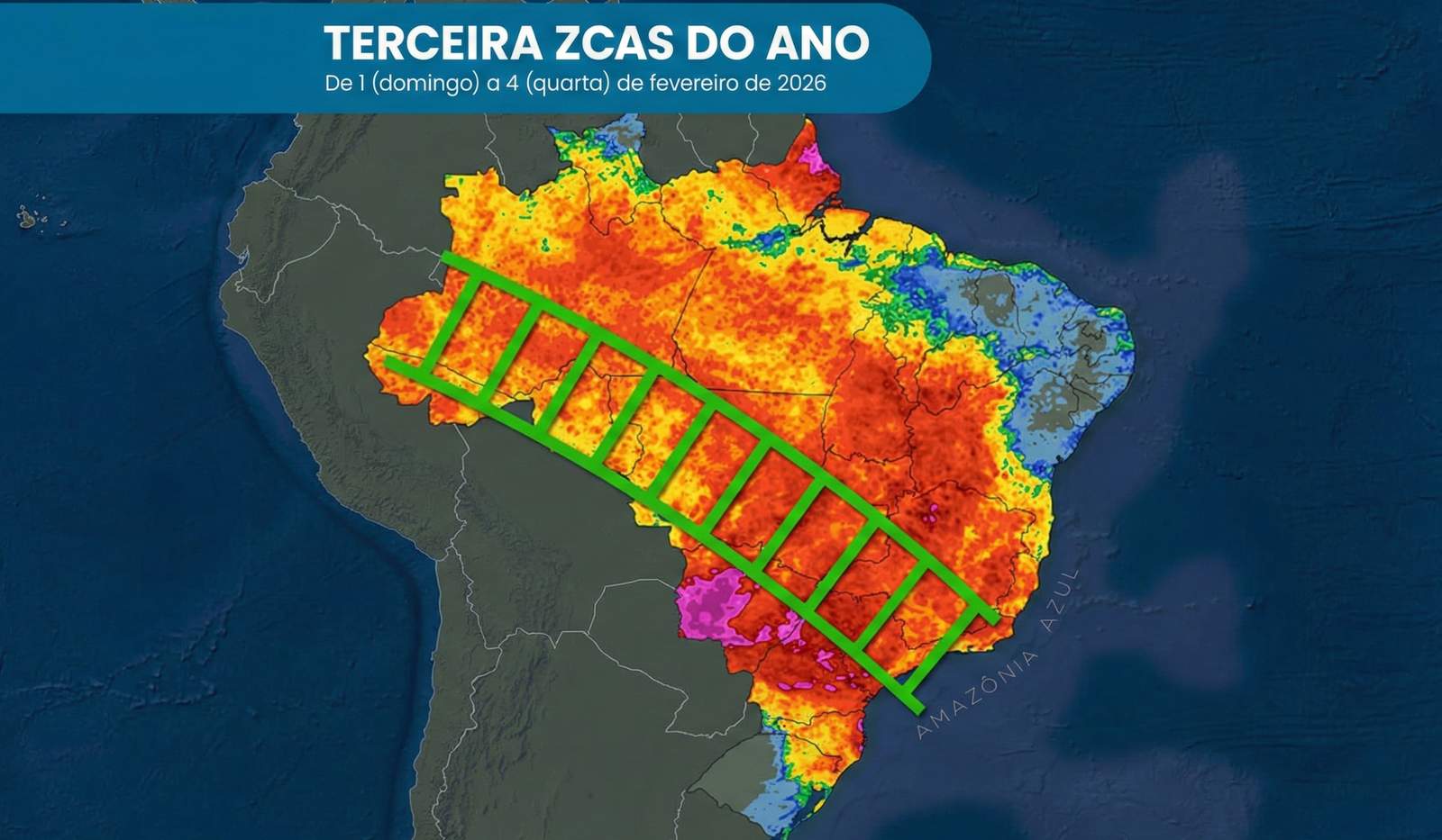 ZCAS deve aumentar volume de chuva no Acre e no Norte no início de fevereiro