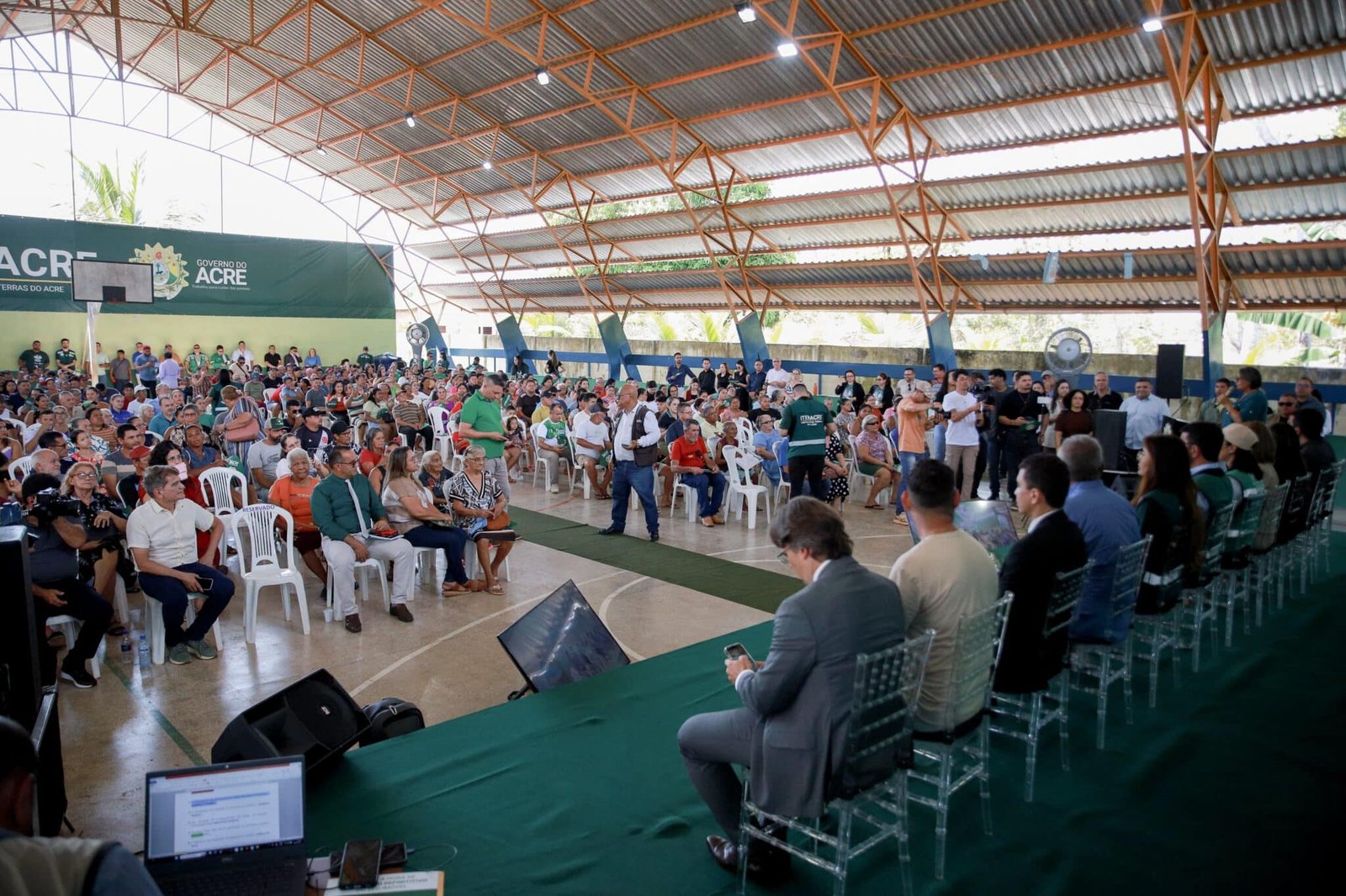 No evento, o governador Gladson Cameli afirmou que a regularização fundiária é central na estratégia da gestão. “O direito constitucional à propriedade privada é a base de um país democrático. A partir do momento que têm a posse de um terreno, de uma colocação ou de uma casa, nossos cidadãos mudam de patamar na escala social”, disse. Ao lado da presidente do Iteracre, Gabriela Câmara, Cameli ressaltou a parceria com o Tribunal de Justiça do Acre no processo de titulação. “Quero agradecer ao Tribunal de Justiça do Acre, na pessoa do desembargador Laudivon Nogueira, que tem sido um parceiro nesse processo”, declarou.